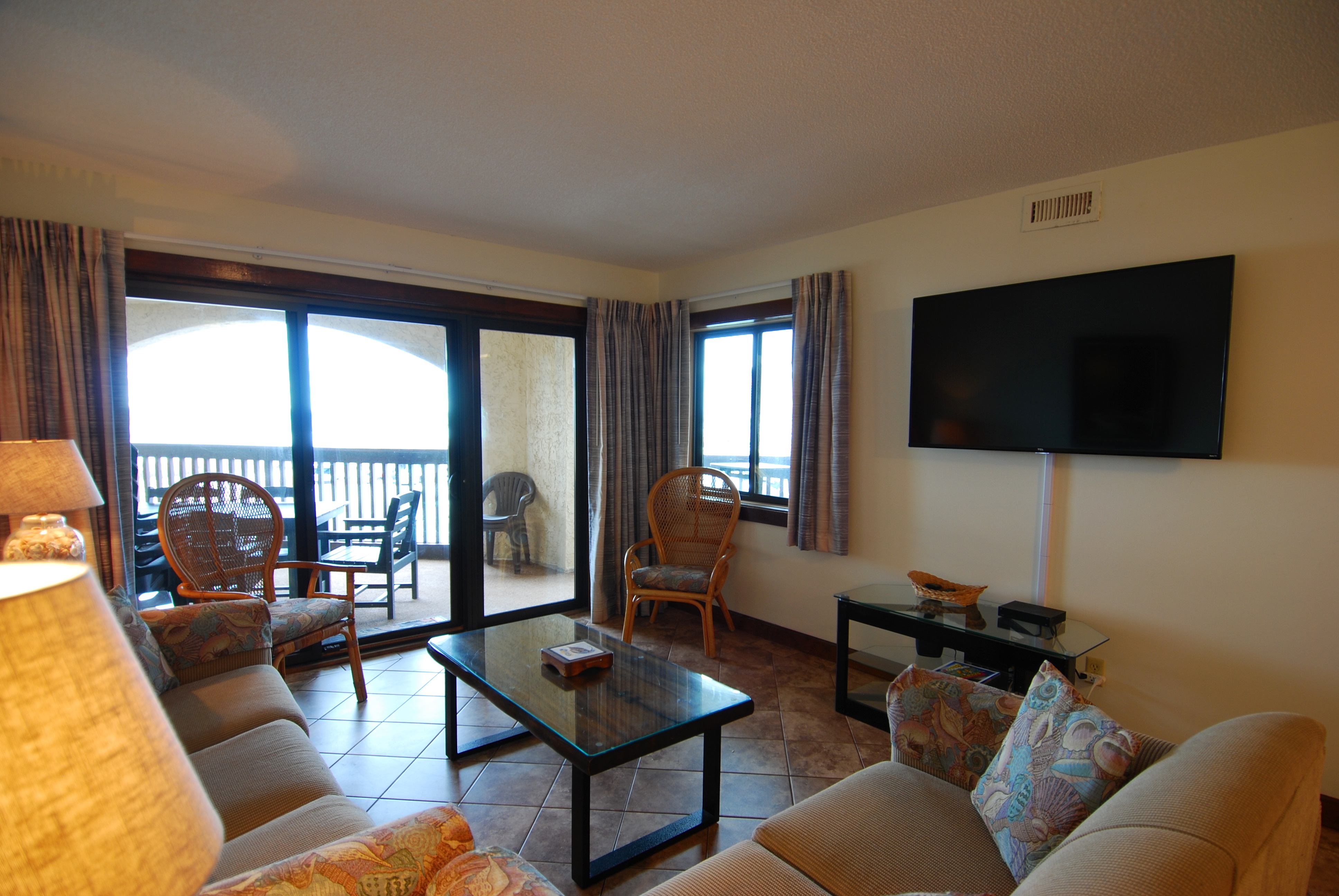 Beds/Baths2 BR2 BA6 Guests Action Links Request info Printer-friendly version Living RoomView-LeftView-CenterView-RightBalconyBalconyLiving RoomLiving RoomLiving RoomDining RoomDining RoomDining RoomKitchenKitchenKitchenWasher and Dryer in KitchenFront DoorMain BedroomMain BedroomMain BedroomMain BedroomMain BathroomMain BathroomTwin Guest BedroomTwin Guest BedroomGuest Bathroom Search AvailabilityGeneral InformationLocation:Ocean Front (South Half)View:Ocean SideMax Occupancy: 6 GuestsBeds1 King1 Twin1 Sofa Bed1 Full