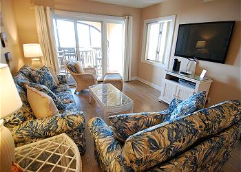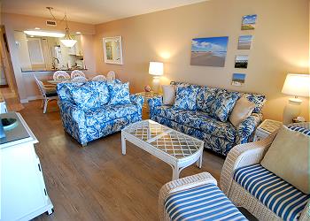 This unit is equipped with a King size bed in the main bedroom, Twins in the second bedroom and a Queen pull out Sleeper Sofa in the living room.