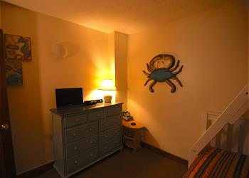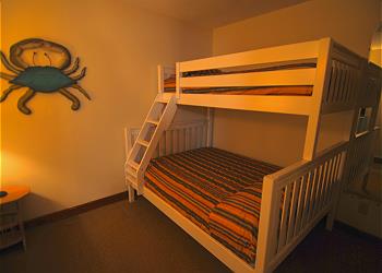 Bunk Guest Bedroom [32]This great three bedroom Ocean Front condo overlooks the campground, pool and the beach area. This three bedroom unit has an open layout, perfect for a big family or couples. There is a newly installed walk-in shower in this condo. The unit has a balcony that includes a screened in side and an open air side. This condo does not allow pets.