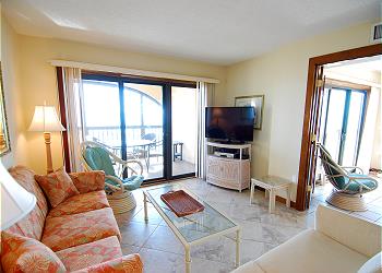 This condo has a 50" TV with a DVD player in the living room, a 32" TV with a Blu-Ray player in the main bedroom, a 24" TV in the twin bedroom and a 32" TV in the sunroom.