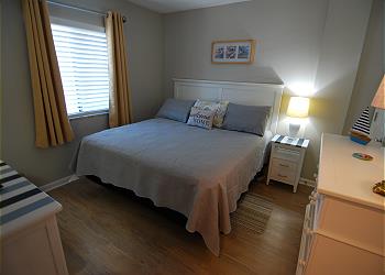 This condo is equipped with a King sized bed in the bedroom and a Queen sofabed in the living room.